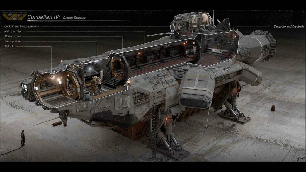 Matthew Savage, também artista conceitual, detalhou sua estratégia para conseguir a oportunidade de trabalhar no filme. Ele preparou um portfólio focado em designs de naves espaciais para enviar ao designer de produção Naaman Marshall e a Fede Álvarez. “Ouvi de Naaman muito rapidamente, e então tive minha primeira chamada e ele me deu o navio para fazer”, contou Savage.