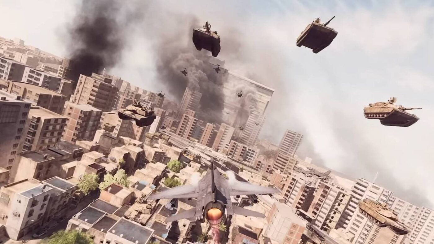Imagem promocional de Battlefield 6 com veículos militares.