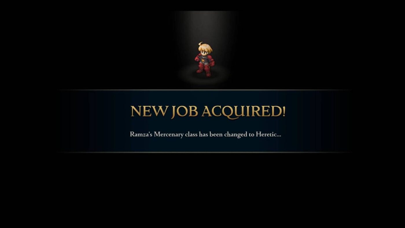 • No Capítulo 4, a classe é renomeada para Herético, e Ramza adquire as técnicas Shadowblade e Duskblade do Cavaleiro Sombrio.