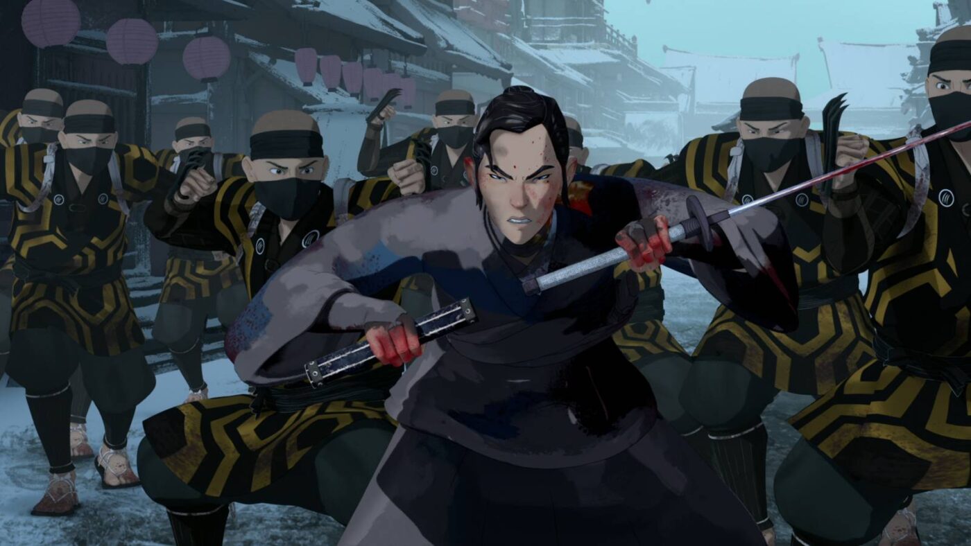 Mizu em uma cena de ação de Blue Eye Samurai, série da Netflix
