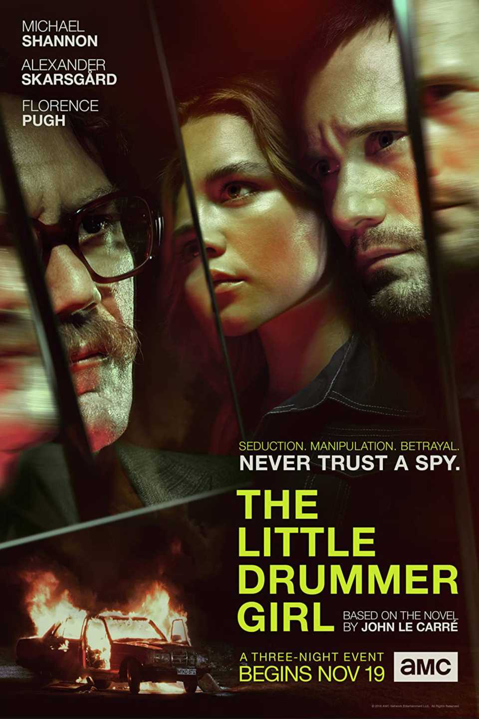 The Little Drummer Girl é uma minissérie de seis episódios que estreou originalmente na BBC One em outubro de 2018, chegando ao AMC nos Estados Unidos um mês depois. A trama se passa na Europa de 1979 e acompanha Charmian “Charlie” Ross (Florence Pugh), uma jovem atriz inglesa de esquerda em início de carreira.